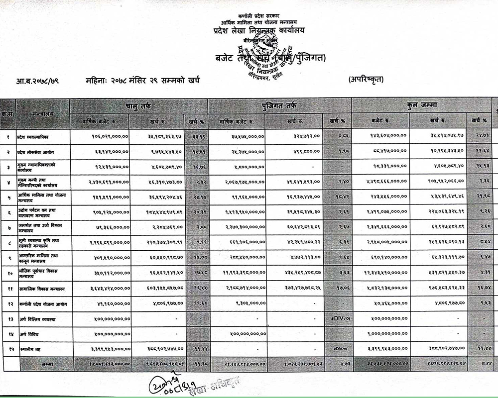 पाँच महिनामा कर्णाली सरकारकाे विकास खर्च सात प्रतिशतमात्रै !