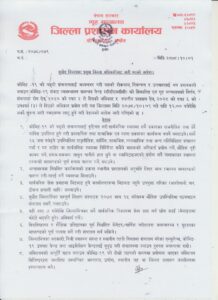 सोहीअनुसार जिल्लामा कोरोना संक्रमण फैलिन नदिन १२ बुँदे स्वास्थ्य सुरक्षा मापदण्डसम्बन्धी आदेश जारी गरिएको हो।