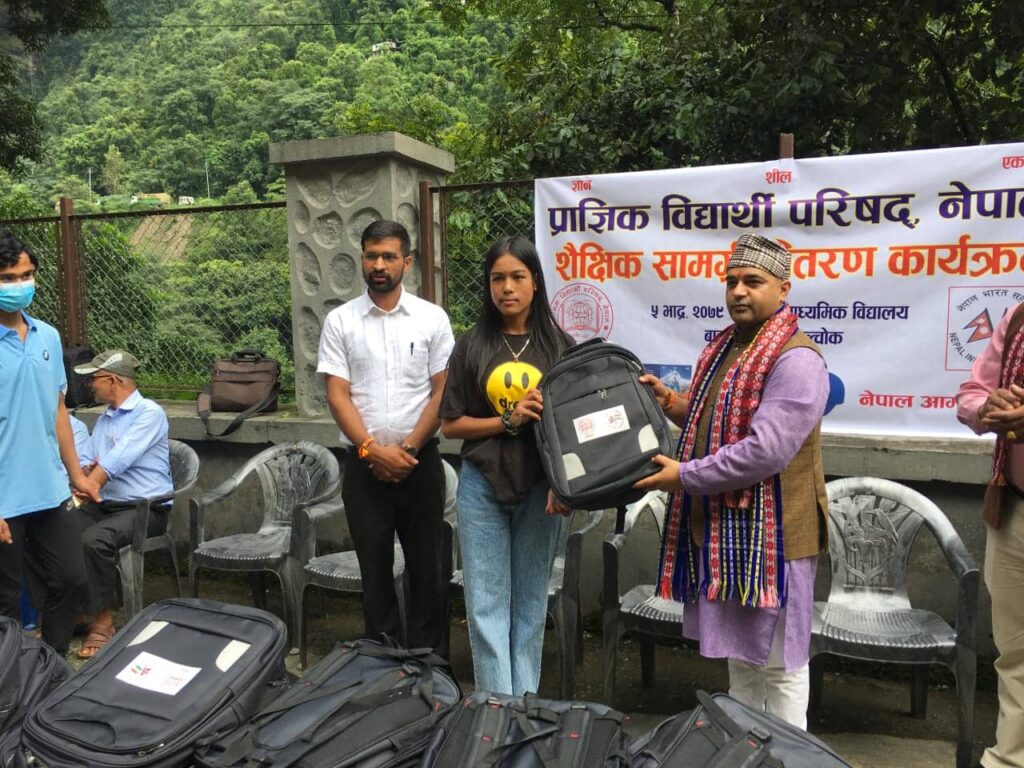 दुर्गममा शैक्षिक सामग्री वितरण गर्दै प्राज्ञिक विद्यार्थी परिषद्