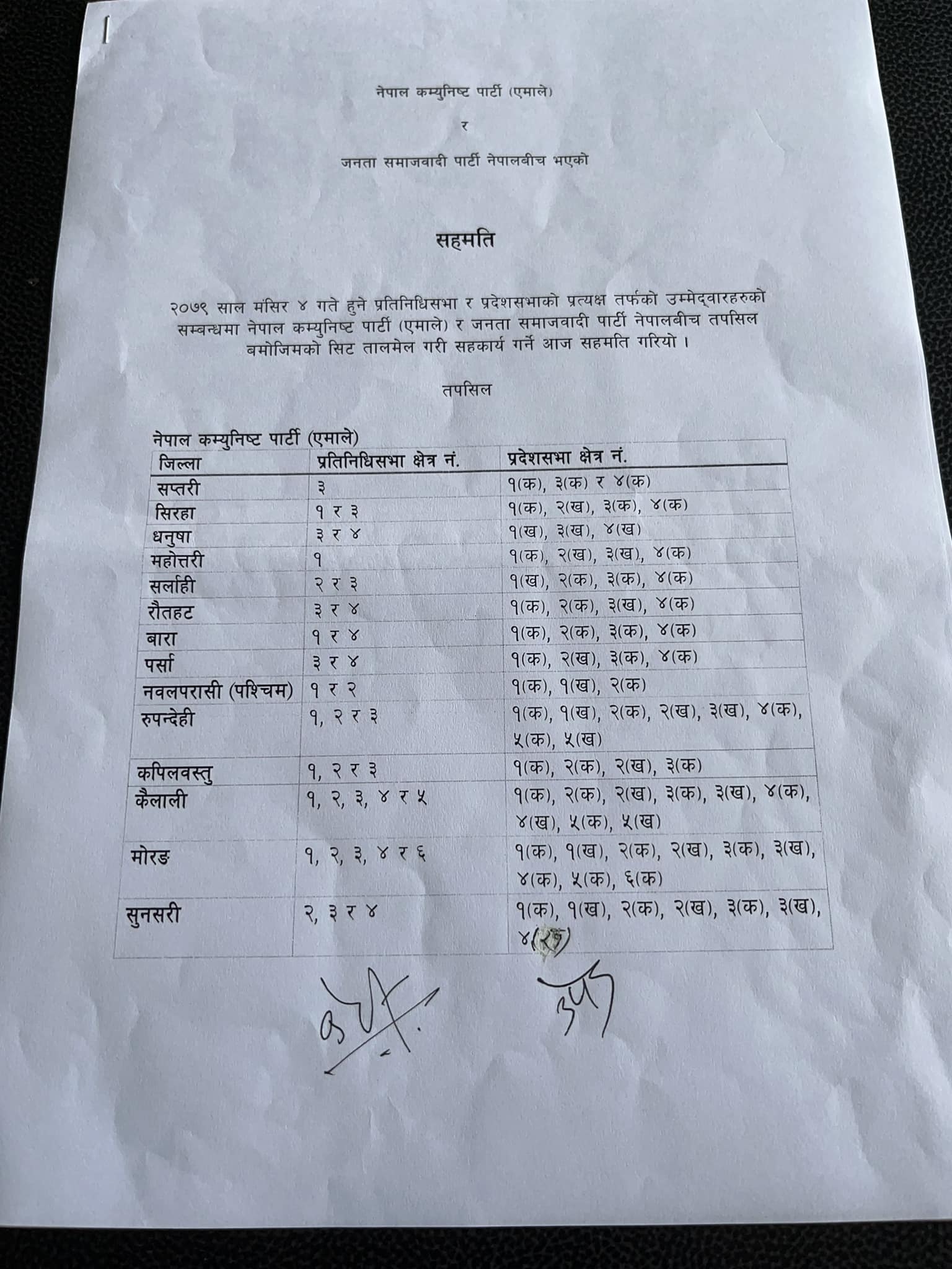 एमाले र जसपाबीच तालमेल, १७ सिट जसपालाई, हेर्नुहोस विवरण