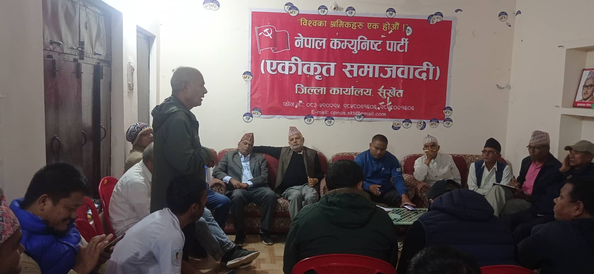 नेकपा एकीकृत समाजवादी जिल्ला कमिटि सुर्खेतले कर्णाली प्रदेशको सुर्खेतमा प्रदेश सभाको भागवण्डा एकपक्षीय भएको भन्दै त्यसलाई सच्याउन माग गरेको छ ।