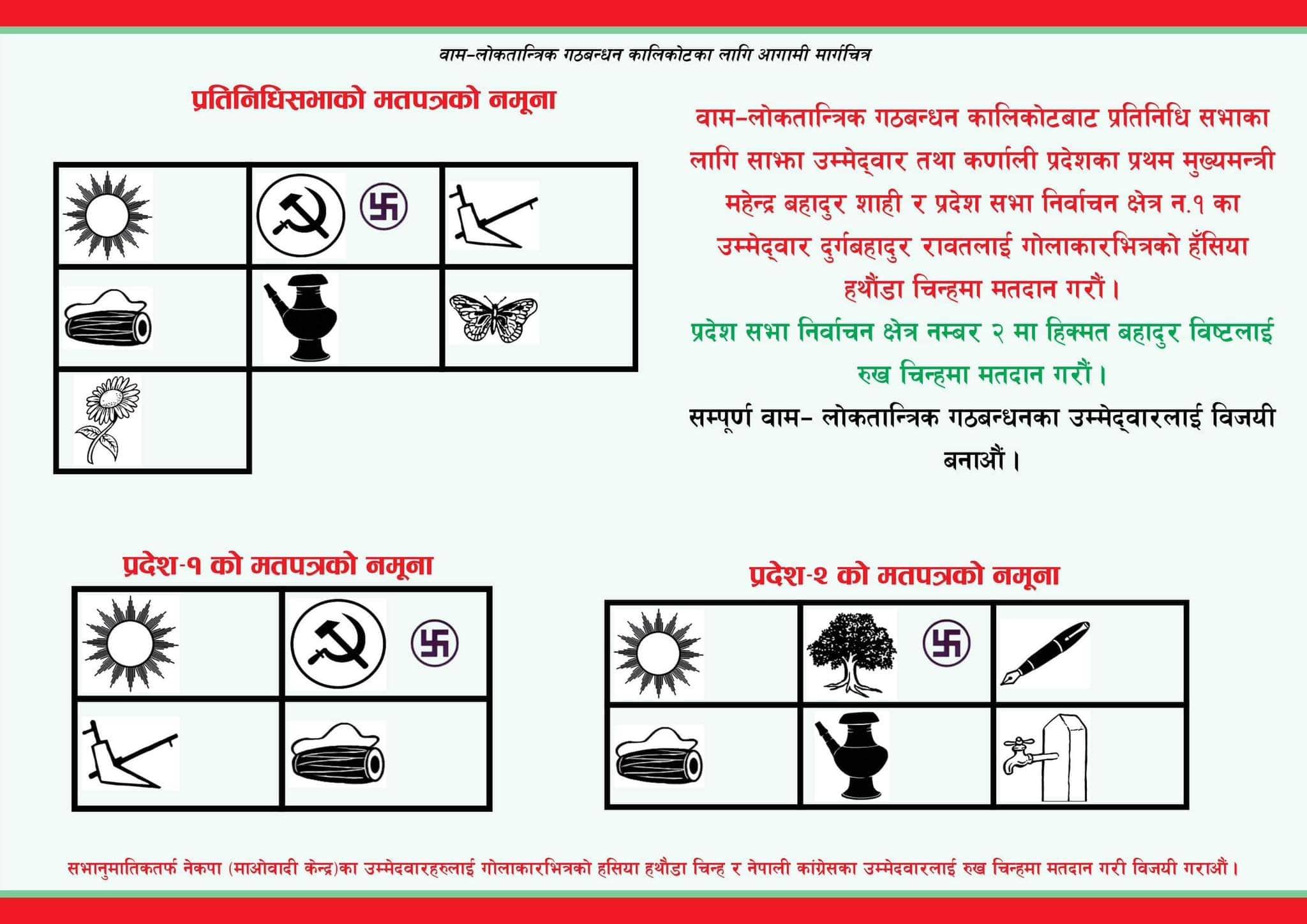 साथै घरघरमा रोजगारीको अवसर सिर्जना गरिने पनि उनले बताएका छन् । माओवादीका प्रभावशाली नेता शाही कालिकोटबाट गठबन्धनका साझा उम्मेदवार हुन् । उनले नेकपा एमालेका नागेन्द्र शाही ‘नेशनल’ सँग चुनावी प्रतिस्पर्धा गर्दैछन् । यद्यपि उनको विरुद्धमा माओवादीकै काशिचन्द्र बराल पनि चुनावी मैदानमा छन् । बराल यसअघि रास्कोट नगरपालिकाको प्रमुख भएर पाँचवर्ष कार्यकाल चलाइसकेका व्यक्ति हुन् ।