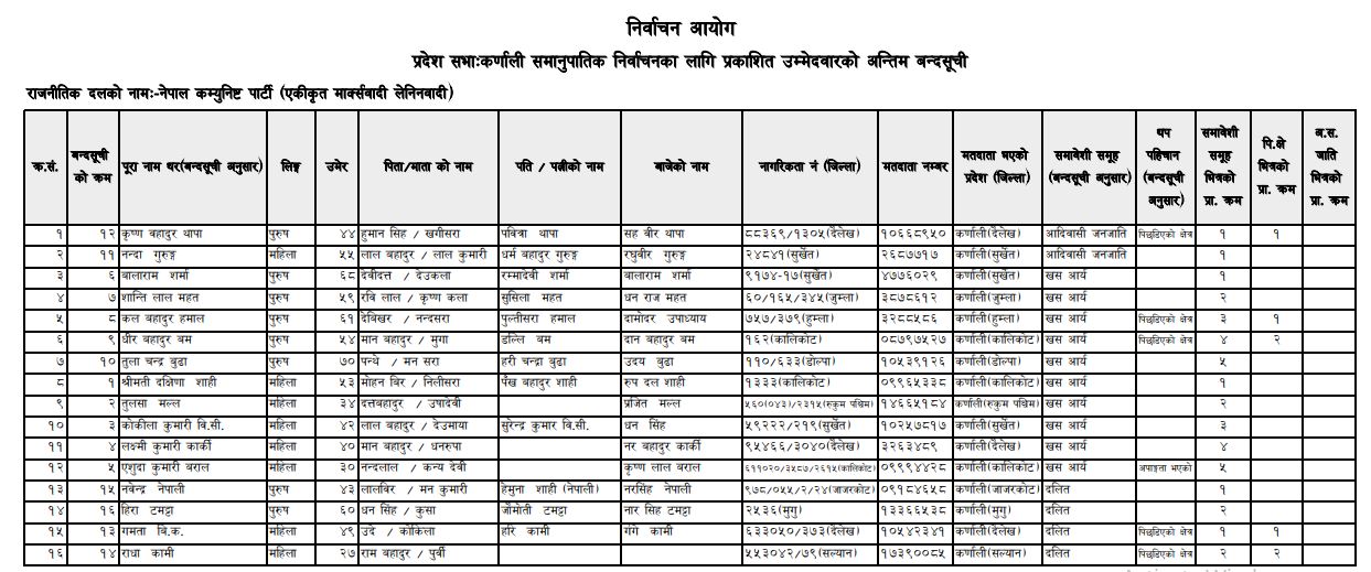 एमालेलाई निर्वाचन आयोगले चार जना महिला र एक जना पुरुषको नाम सिफारिस गरेर पठाउन भनेर पत्र पठाएपछि कर्णालीमा एक जना पुरुष को छान्ने भन्नेमा कौतुहलता बढेको हो ।