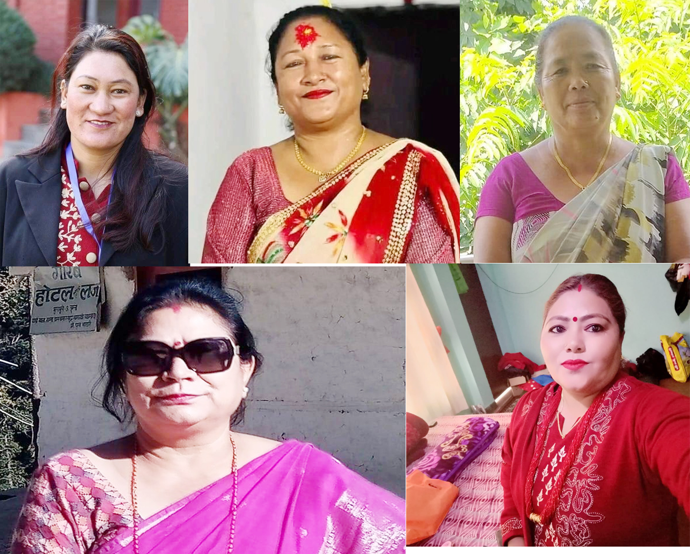 जसमा लक्ष्मी सुनार सल्यान, बलिमाया बुढा सुर्खेत, सुर्खेतकै जानकी सिंह, हुम्लाकी विजया बुढा र दैलेखकी इन्द्रा कुमारी शाही प्रदेश संसद छनौट भएकी हुन ।