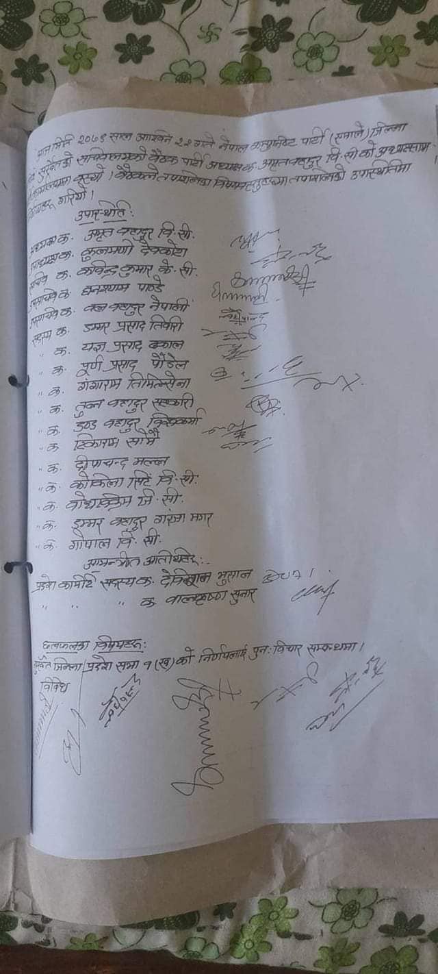 आज ३ गते हुने भनिएको जिल्ला कमिटी बैठकमा म गाउँ कमिटी अध्यक्षलाइ समिक्षा बैठकमा बोलाउन आबश्यक ठानेन र बैठकमा बोलाइन्छ कि प्रतिक्षा मै थिएँ । जिल्ला कमिटीले बोलाएन । सूचना समेत दिएन । पदेन सदस्य भएकोले नबोलाएको बैठकमा नजाने मेरो स्थापित मान्यता नै छ । हिजोको प्रतिनिधि सभा समन्वय कमिटीले समेत बोलाउन आबश्यक ठानेन । जिम्मेवारीको हैसियतले पालिका मै निकट भबिस्यमा निर्बाचनको समिक्षा गर्ने नै छु ।