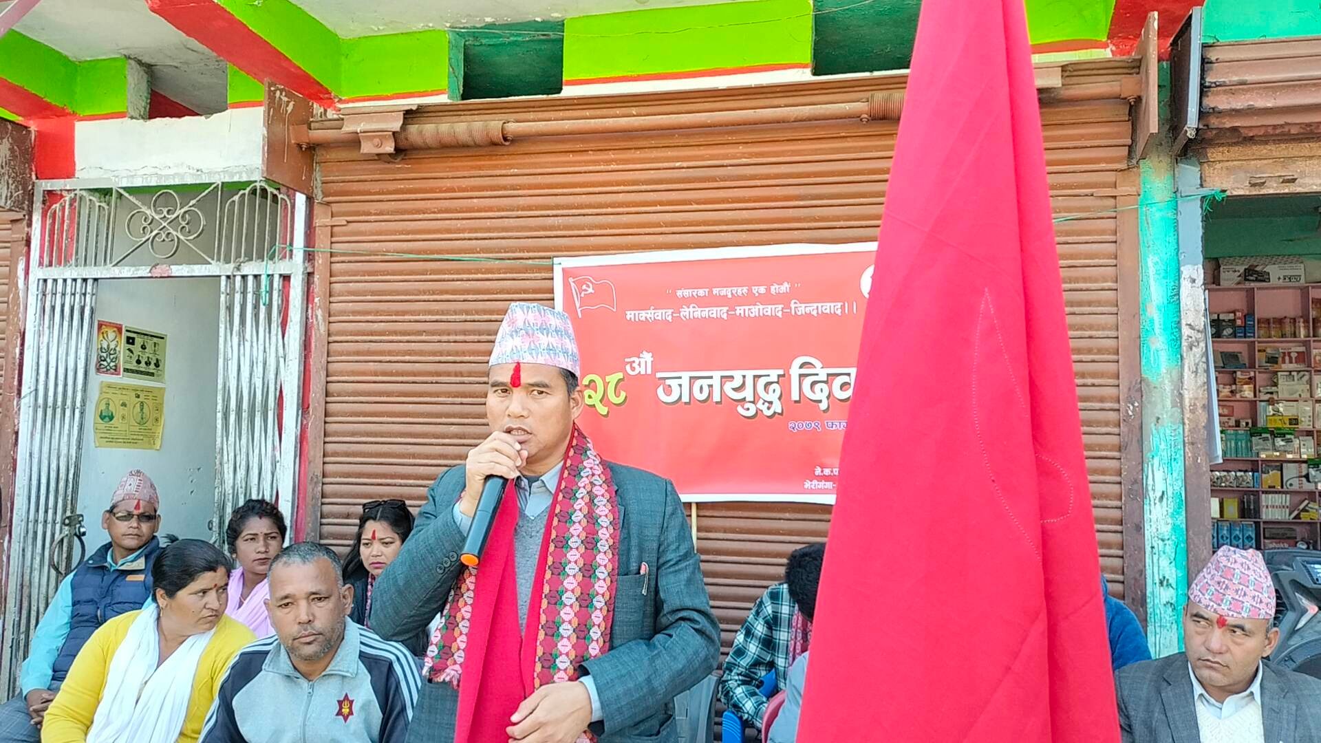 नेकपा माओवादी केन्द्र भेरीगंगा नगरपालिका वडा नं. ६ मा आयोजना गरिएको जनयुद्ध दिवसको अवसरमा आयोजित कार्यक्रमलाई सम्वोधन गर्दै उनले व्यक्तिगत रुपमा दश जनाको स्वास्थ्य वीमा गर्ने बताएका हुन ।