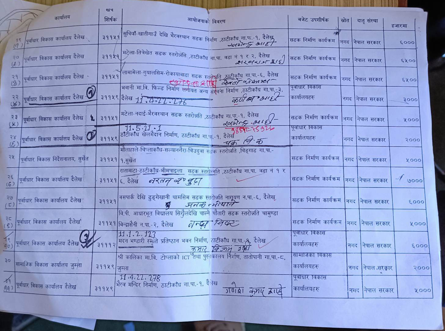 मन्त्री शाहका मामाका छोरा जयाबहादुर शाहीलाई कालो शिल्लो मन्दिर निर्माण ठाँटीकाँध वडा नं. तीन भनेर १५ लाख बजेट विनियोजन गरेका छन् ।