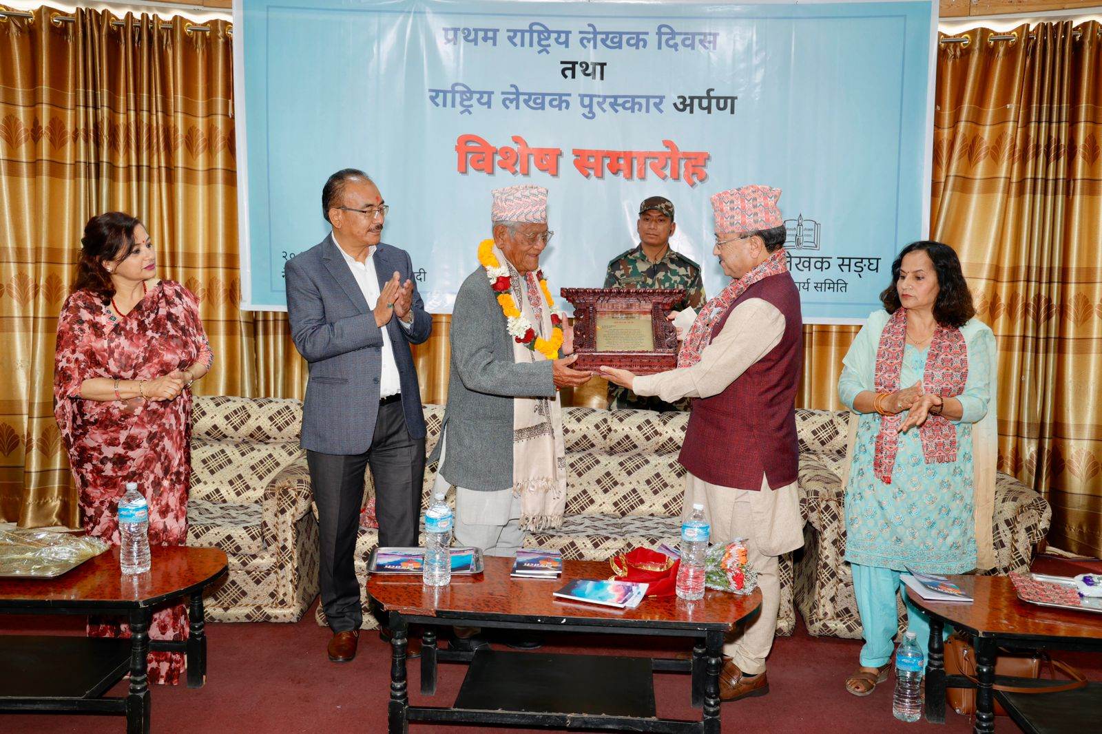 लेखक दिवसका अवसरमा शनिवार राजधानीमा आयोजित कार्यक्रममा उपप्रधानमन्त्री तथा रक्षा मन्त्री पूर्ण बहादुर खड्काले नगद सहित सम्मान पत्र हस्तान्त्रण गरेका हुन् ।