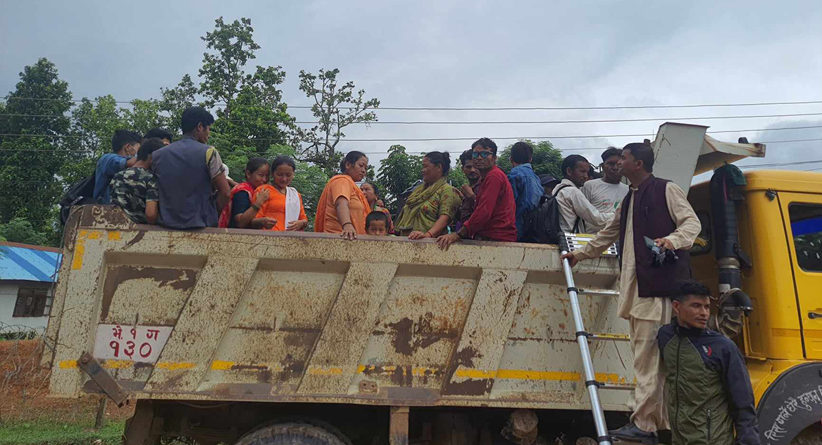 अध्यक्ष विकको नेतृत्वमा चौकुनेबाट ६० जना यात्रुलाई टिप्परबाट वीरेन्द्रनगर ल्याइयो