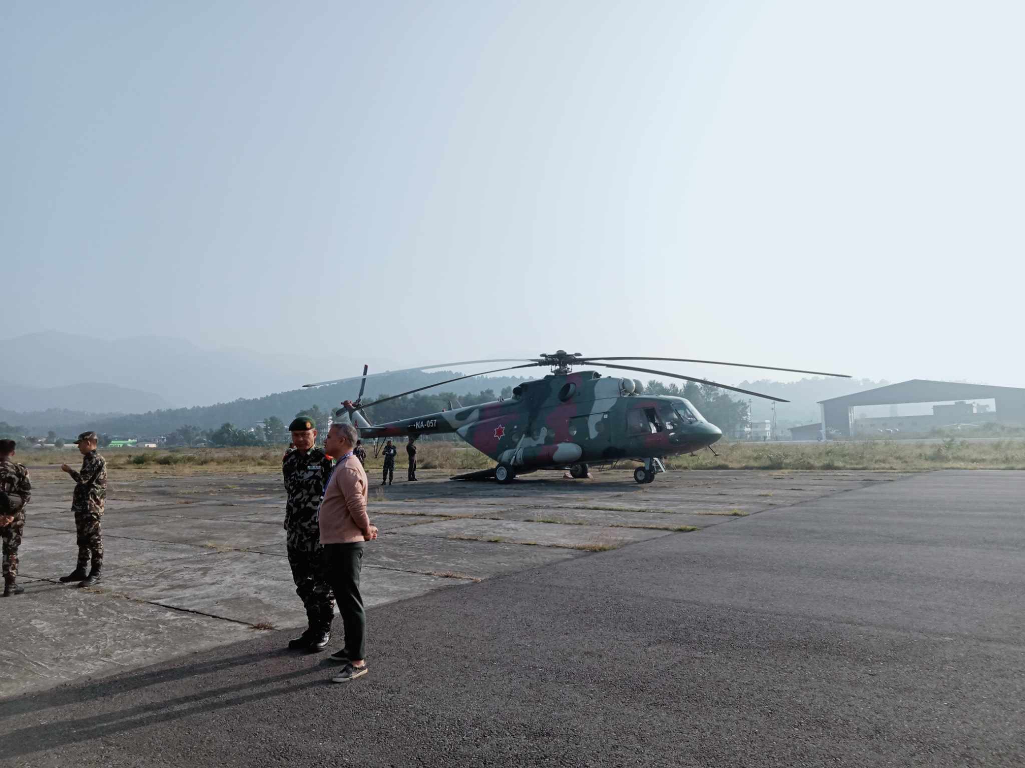 विहानै झिसमिसेमा सुर्खेत विमानस्थल पुग्ने र त्यहाँबाट राहत पुर्याउने स्थानमा तत्काल हेलिकप्टर पठाउने कार्य उनको नियमित जस्तै बनेको छ ।