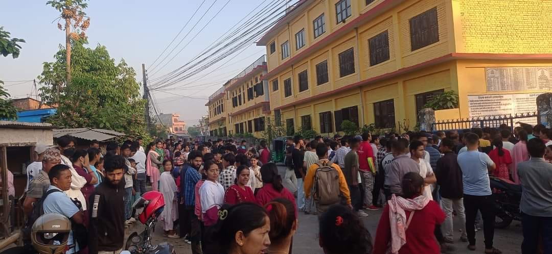 ‘हाम्रो विद्यालयमा विद्यार्थी संख्या अतधिक आएको छ । कसरी व्यवस्थापन गर्ने भन्ने चुनौति थपिएको छ ।’ प्रअ थापाले भने, ‘प्रवेश परीक्षा दिइसकेपछि पनि सयौं विद्यार्थीहरु भर्नाका लागि आएका छन्, तर हामीसँग कक्षा कोठा अभाव भएका कारण चाहेर पनि विद्यार्थी भर्ना लिन सक्ने अवस्था रहेन ।’ प्रअ थापाका अनुसार विद्यालयमा भौतिक संरचना निर्माणका लागि जग्गा भएपनि विमानस्थल विस्तार गर्ने ‘हल्ला’ले समस्या पारेको हो ।